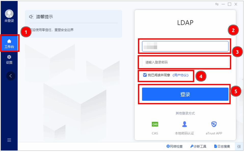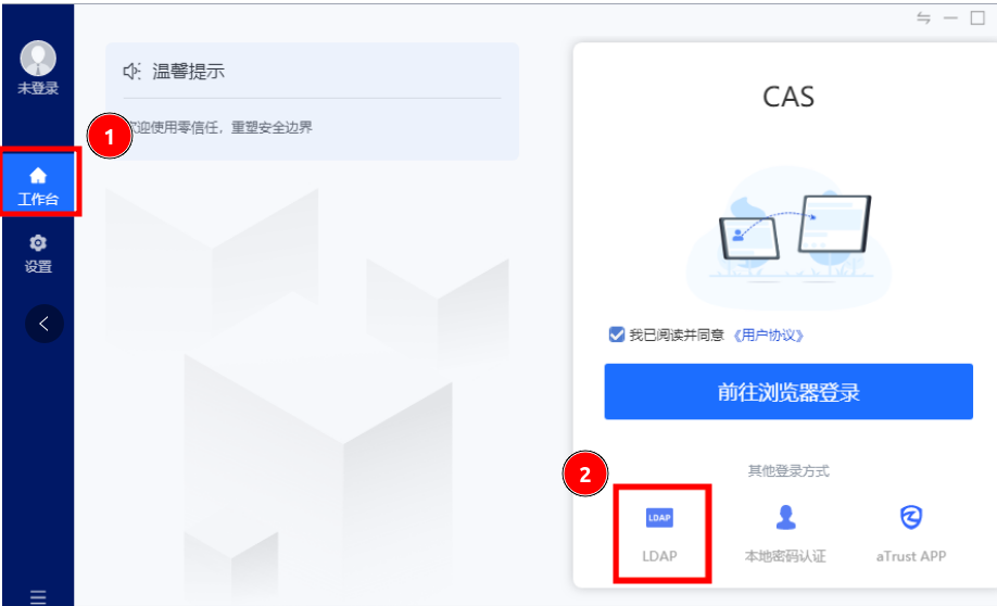 用户双击打开名为aTrustInstaller的客户端软件,在软件安装界面查看用户协议后,勾选“我已阅读并同意”后点击安装界面的 “立即安装”按钮,开始安装。