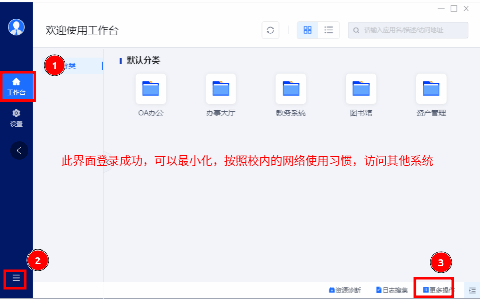 第五步成功认证后,客户端显示认证成功;此时用户已经连入内网。可以参照校园网内的使用习惯访问校内所有资源。