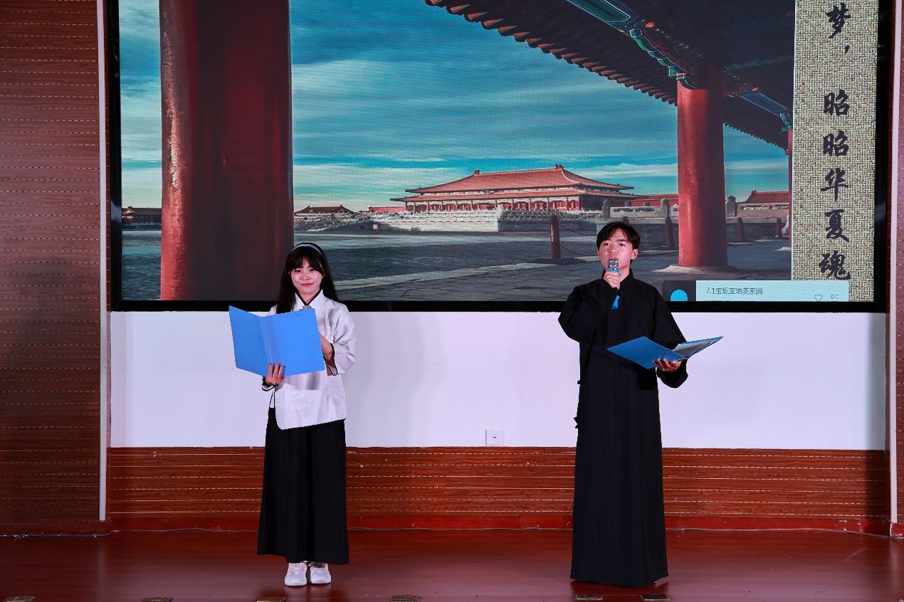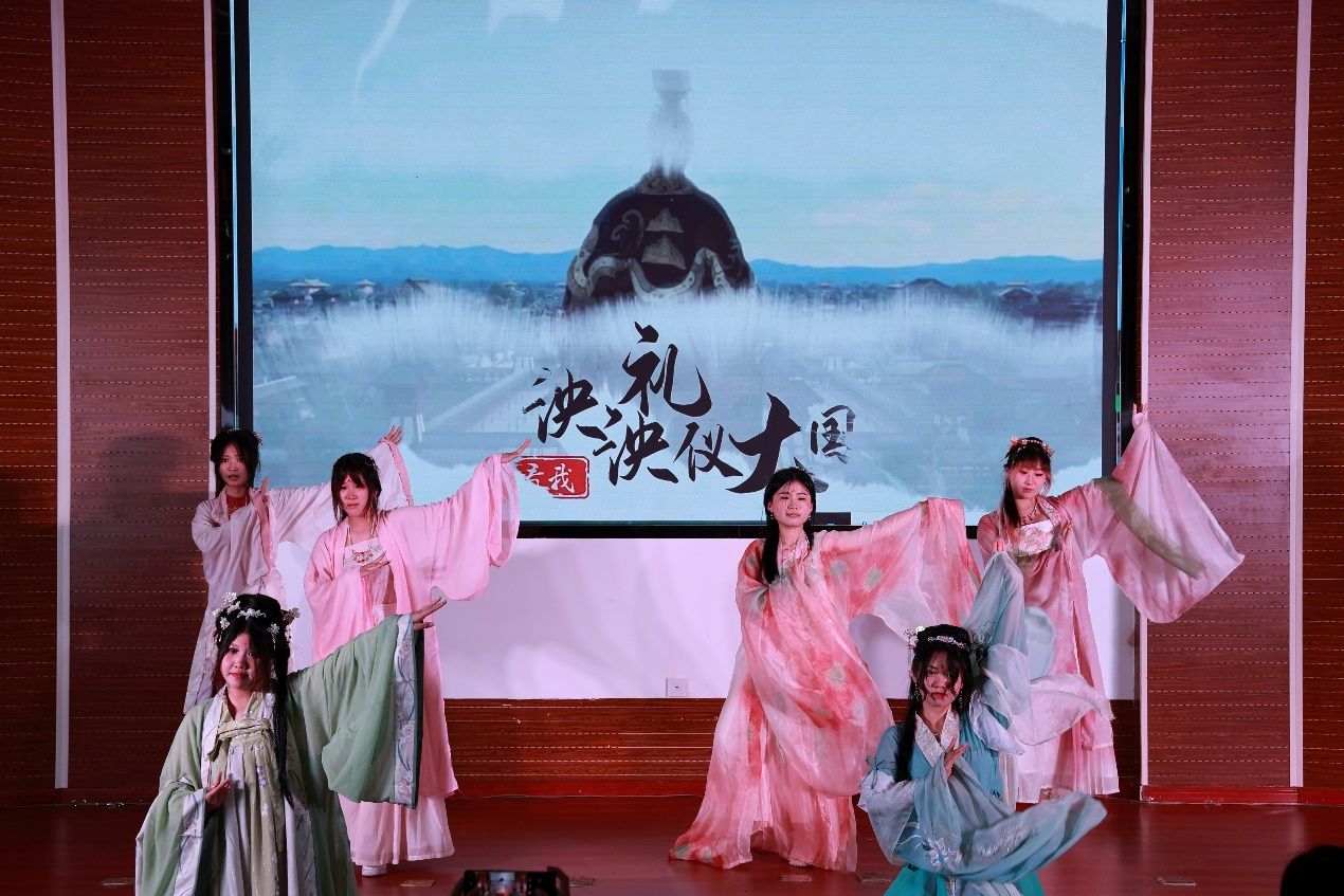 读书文化节晚会在图书馆馆员郑妍和邢智轩带来歌曲《读书之歌》中拉开帷幕,歌声以温馨、励志、正能量的氛围让现场听众仿佛陷入书的海洋,饱览它的妩媚与壮丽、感受岁月无法侵蚀的力量。余音未绝,学生艺术团茶筵社献上茶艺表演《茗红飘香》,通过对红茶冲泡技艺的形象演示,生活化地给观众展示泡饮过程,使观众在优雅环境氛围中得到美的享受和情操的熏陶;师生同台太极书法《文墨武韵》上演,陈学思同学在推柔虚实、连绵畅顺、行云流水的招式中与图书馆馆员李朋洋、施念来同学挥洒自如的落笔有“异曲同工”之妙,共同彰显出中国传统文化之瑰丽;配音表演《这盛世如你所愿》极富感染力,让我们时刻铭记先烈们的牺牲、珍惜当下幸福生活;歌曲《阅读有光》点燃我们内心的火焰且增强无惧风雨,勇往直前的勇气;《琵琶行》用音乐来表达意境,将听觉抽象为一种视觉的形象,展现了人类用文字描写声音的极致,极具美感。汉服舞蹈《礼仪之邦》,歌曲《少年中国说》也迎来阵阵掌声。