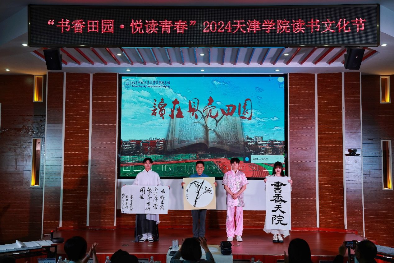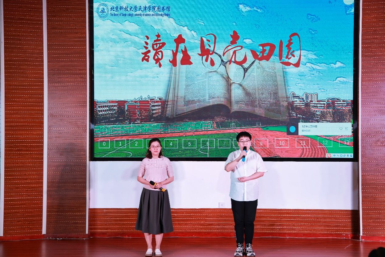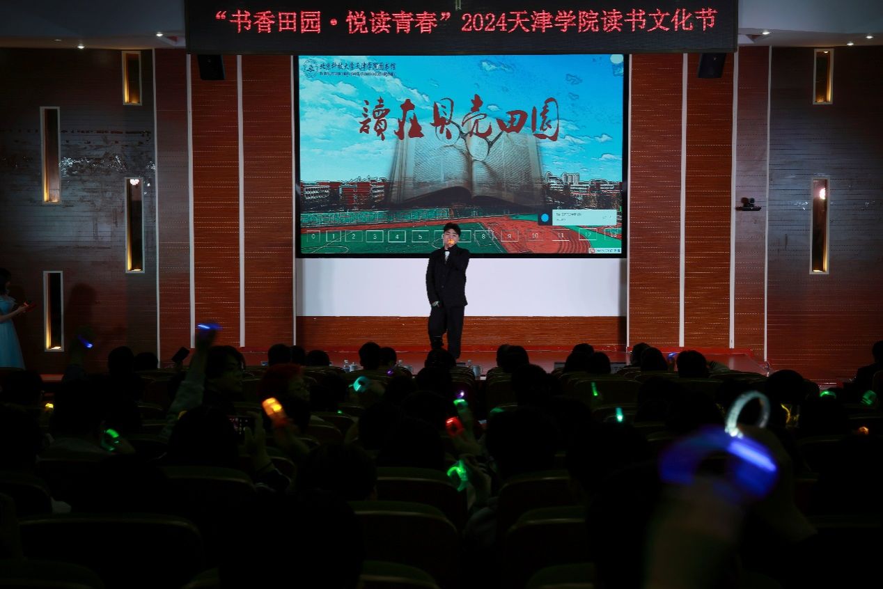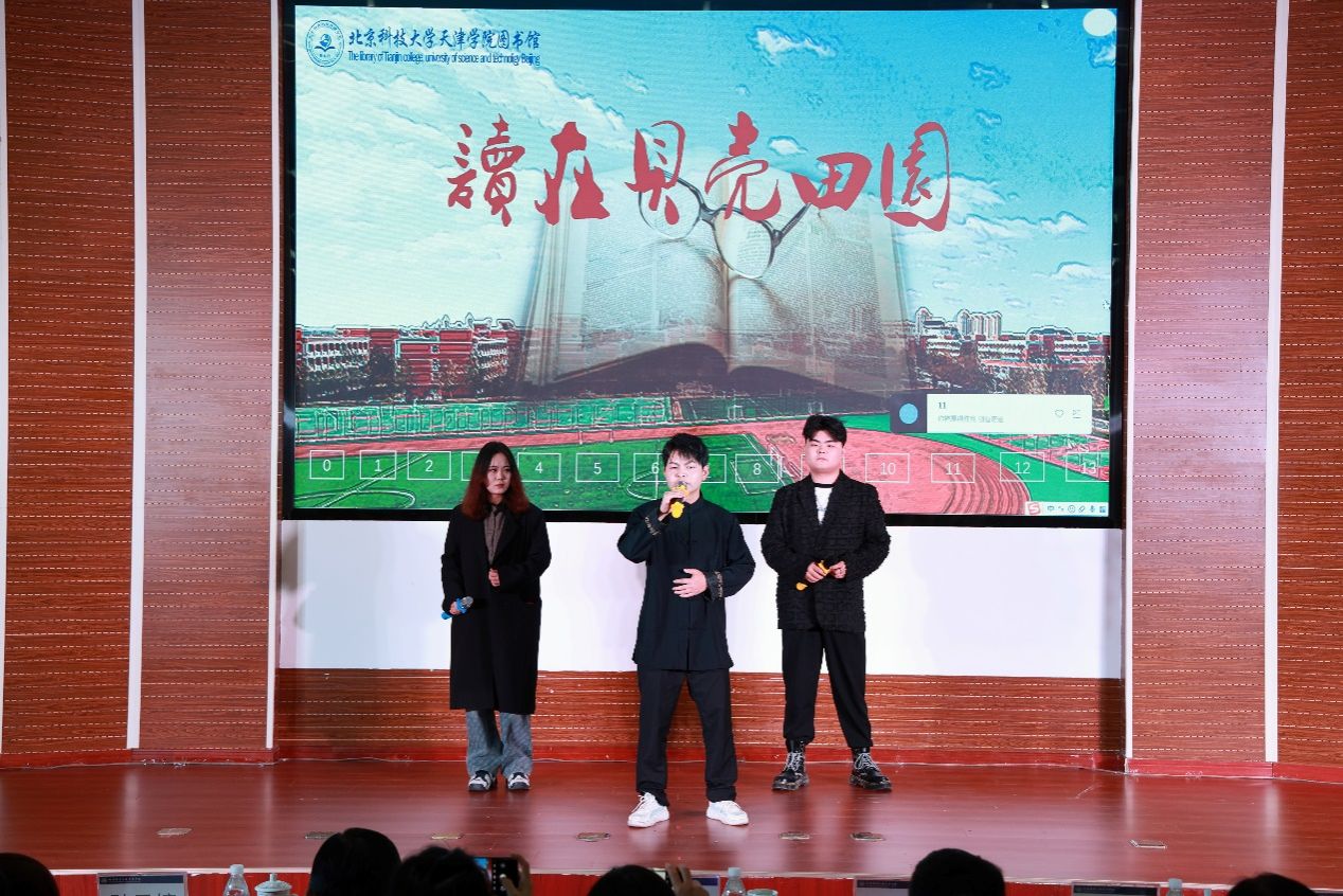 2024年4月23日晚7:00,图书馆在理工馆学术报告厅成功举办“书香田园·悦读青春”主题读书文化节晚会。宝坻区文化和旅游局局长吴庆娟、副局长张英,宝坻区图书馆馆长孙凤婷,文化馆馆长倪芳芳,北京科技大学天津学院院长丁煦生,学院各部门负责人、图书馆全体馆员以及来自各院系师生300余人参加了晚会。