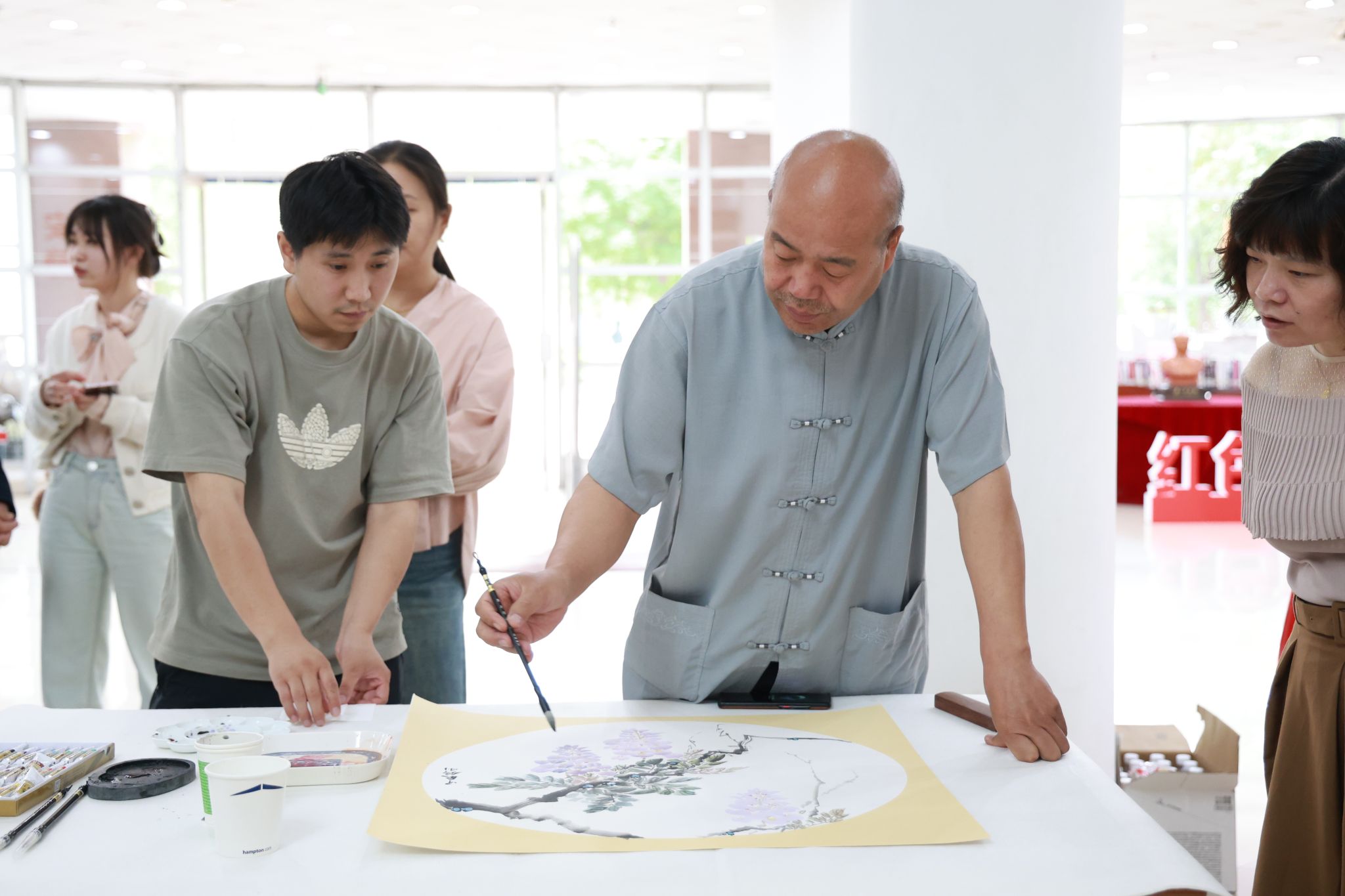 讲座结束之后,与会人员来到一楼大厅,由各位专家进行现场笔会。专家们挥毫泼墨,创作了二十余幅大气磅礴、妙手丹青的书画作品,引起现场观众的阵阵赞叹。