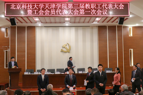12月4日下午4:00,北京科技大学天津学院第三届教职工代表大会暨工会会员代表大会第一次会议在学术报告厅隆重召开。北京科技大学工会常务副主席贾水库、北京科技大学天津学院院长王斌、党委书记丁煦生、副院长张永锋、副院长兼党委副书记叶振楠、党委副书记牛犁、财务总监王俊敏、院长助理兼学术委员会主席宋存义出席大会。会议由党委副书记牛犁主持。