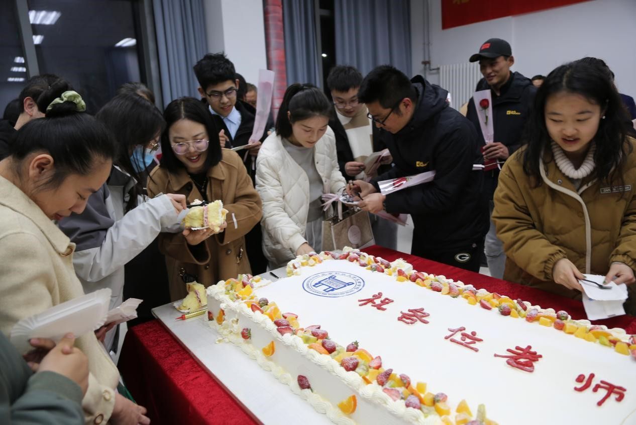 教职工合影留念,共同唱响生日快乐歌,共切生日蛋糕。在温馨欢乐的气氛中,大家品尝蛋糕、水果,分享喜悦,互相送上祝福。此次集体生日会是由工会、后勤处、学院办公室、材环学院共同组织筹办的第一次集体生日活动,学院教职工广泛参与,增强了学院凝聚力,让教职工在学院这个大家庭中快乐工作、幸福生活。
