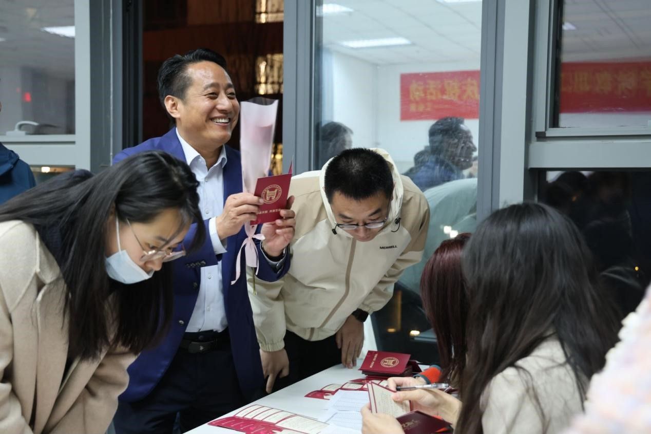 工会准备了蛋糕、水果、鲜花和贺卡等物品,丁煦生院长代表学院为生日教职工送上最诚挚的生日祝福,并对教职工长期以来在教育教学管理一线为学院发展做出的努力和付出表示感谢,希望老师们凝心聚力,为学院高质量发展继续贡献力量。