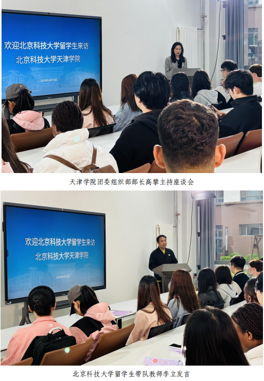 座谈会上,北科大留学生与我院青马工程班学员代表发言,双方学生展开深入交流。分享日常生活、文化背景、学习经历和兴趣爱好,增进彼此了解并建立了深厚友谊。北京科技大学留学生带队教师李立对天津学院的热情招待表示衷心的感谢,希望今后双方进一步加强交流与合作,深耕实践教育领域,为国际化高质量人才培养做出贡献。