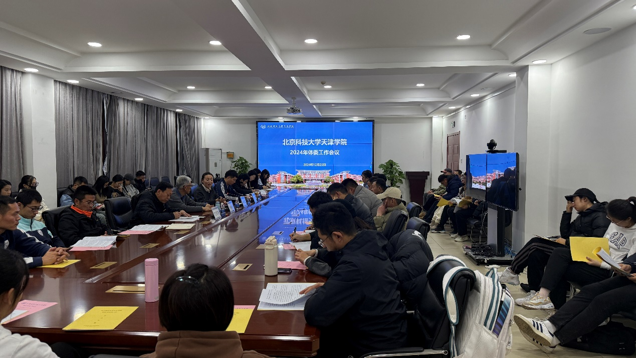 12月25日,北京科技大学天津学院2024年体委工作会议在12教300会议室顺利召开。此次会议旨在总结今年体育工作经验,规划2025年体育工作方向,进一步推动校园体育事业蓬勃发展,学院党委副书记郭雅娟、体育部主任吴铁桥、副主任刘传海,体育部各教研室主任,全体教师、各院系分团委书记、团委相关部门负责人出席本次会议,会议由团委书记周少华主持。
