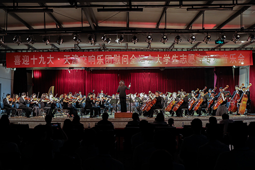 在党的十九大即将召开之际,9月19日晚六点三十分整,由天津交响乐团带来的“喜迎十九大·天津交响乐团慰问全运会大学生志愿者专场音乐会”在北京科技大学天津学院学生活动中心成功举办。北京科技大学天津学院党委副书记叶振楠,教务处长张建华,国际交流处长柯瑜,法律系党总支书记冯海燕,外语系党总支书记张莉,团委书记殷实,艺术系副主任林碧芸与学院师生一道欣赏了这精彩绝伦的艺术盛宴。