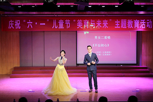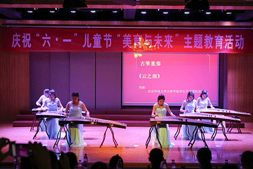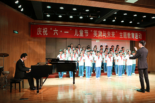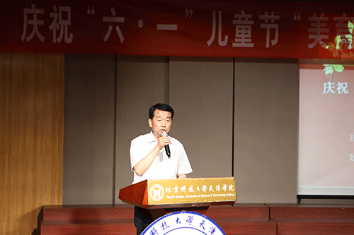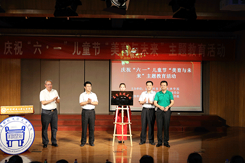 6月1日14:00,庆祝“六一”儿童节“美育与未来”主题活动在我院12教弘艺音乐厅如期举行。天津市教委体卫艺处处长张华泉、副处长刘恒岳,市教育两委驻村工作组组长罗秋明、祝健,宝坻区教育局局长张景富、副局长张武生,大唐庄镇党委书记刘荣、大唐庄镇教委总校长唐加顺,北京科技大学天津学院党委书记、院长王斌,副院长张永锋,财务总监王俊敏,副书记叶振楠,艺术系主任胡建华、副主任林碧芸等出席了本次活动。