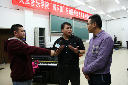 天津音乐学院“翼乐团”带队老师与我院学生艺术团合唱团指导老师张鹏接受学院电视台采访