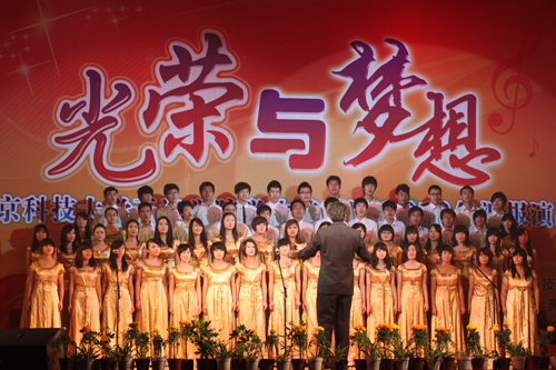 11月19日,“光荣与梦想” 北京科技大学天津学院学生艺术团2010年汇报演出在我院体育馆隆重举行。本次汇报演出由学院团委主办、学生艺术团承办、学生会协办。北京科技大学天津学院党委书记王斌、副院长曹连东、财务总监刘小鸣及各部处负责人出席晚会现场,部分教师及学生也到场观看演出。