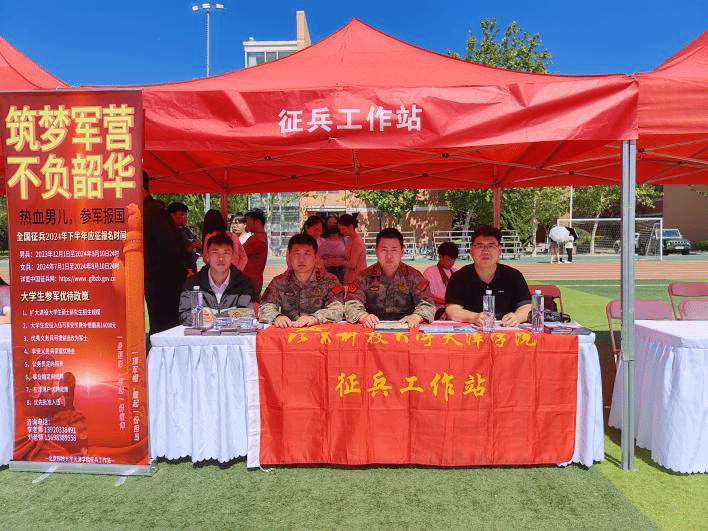 本次双选会现场设置征兵政策宣传展位,利用宣传栏、张贴海报、悬挂条幅、发放征兵宣传册、毕业生征兵入伍政策明白纸以及现场宣讲等多种形式,吸引大批在校生和毕业生前来咨询。宝坻区人武部征兵工作人员、学院征兵工作站干事以及戎程研究会退役大学生为有参军意向的同学进行了一对一沟通指导,对涉及应征入伍优惠政策、保留学籍、学费减免、部队生活及有关报名、体检、政审等具体问题进行详细宣讲,使我校毕业生充分了解今年大学生入伍的各项政策。