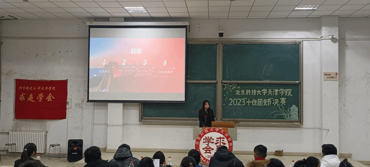 12月20日18:00北京科技大学天津学院2023年“十佳团支书”评选决赛在9教109举行。团委班子成员,各部部长、二级院系分团委书记,以及由各院系分团委副书记组成的学生评审团、20名入围决赛选手参加。
