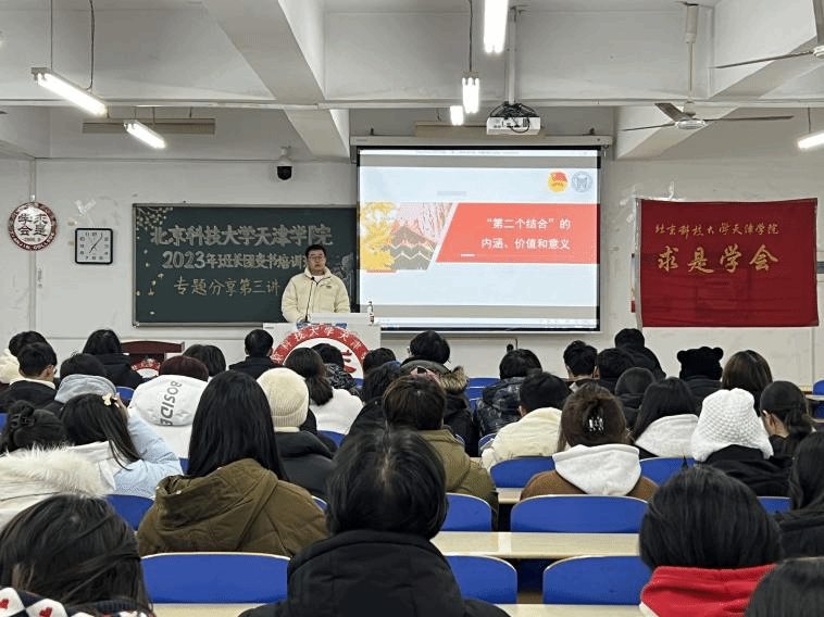 12月13日19:00在8教204举行班长团支书培训班第三讲。罗大钦老师作题为《“第二个结合”的内涵、价值和意义》的专题分享。罗大钦老师结合我院广大团员青年学生实际,从“第二个结合”的提出和系统阐述是重要的创新、“第二个结合”提出的时代背景和意义、传统文化传承发展需要探究的几个问题三个方面,对“第二个结合”的内涵、价值和意义进行深入解读。