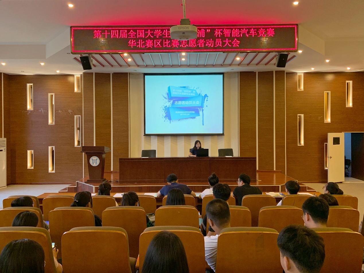 6月24日18:00,第十四届全国大学生“恩智浦”杯智能汽车竞赛华北赛区比赛志愿者动员大会在理工图书馆学术报告厅隆重召开。团委书记殷实,副书记李洋、何欢欢、李光及200名志愿服务师生参加此次动员大会。