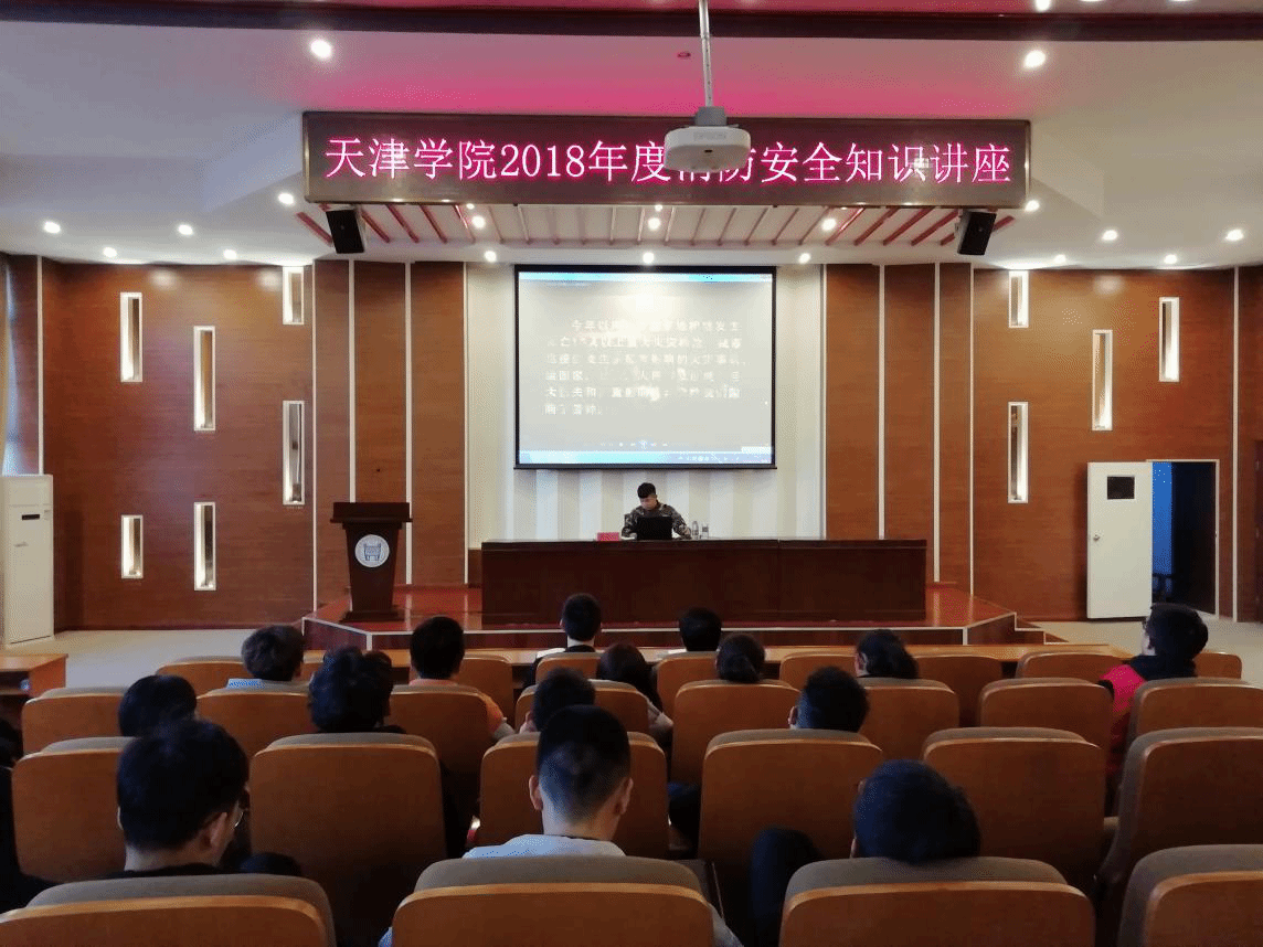 按照学院保卫处2018年“119”消防安全宣传月系列宣传活动工作计划,为普及消防安全常识,切实提高全院师生员工的消防安全意识,学院保卫处组织策划了2018年“119”消防安全宣传月系列活动。11月21日下午,天津学院2018年度消防安全知识讲座在理工图书馆报告厅圆满举行。我院大一至大三学生代表共200余人参加了此次安全知识讲座,讲座特邀请了宝坻消防支队九园中队张天宇中队长主讲。