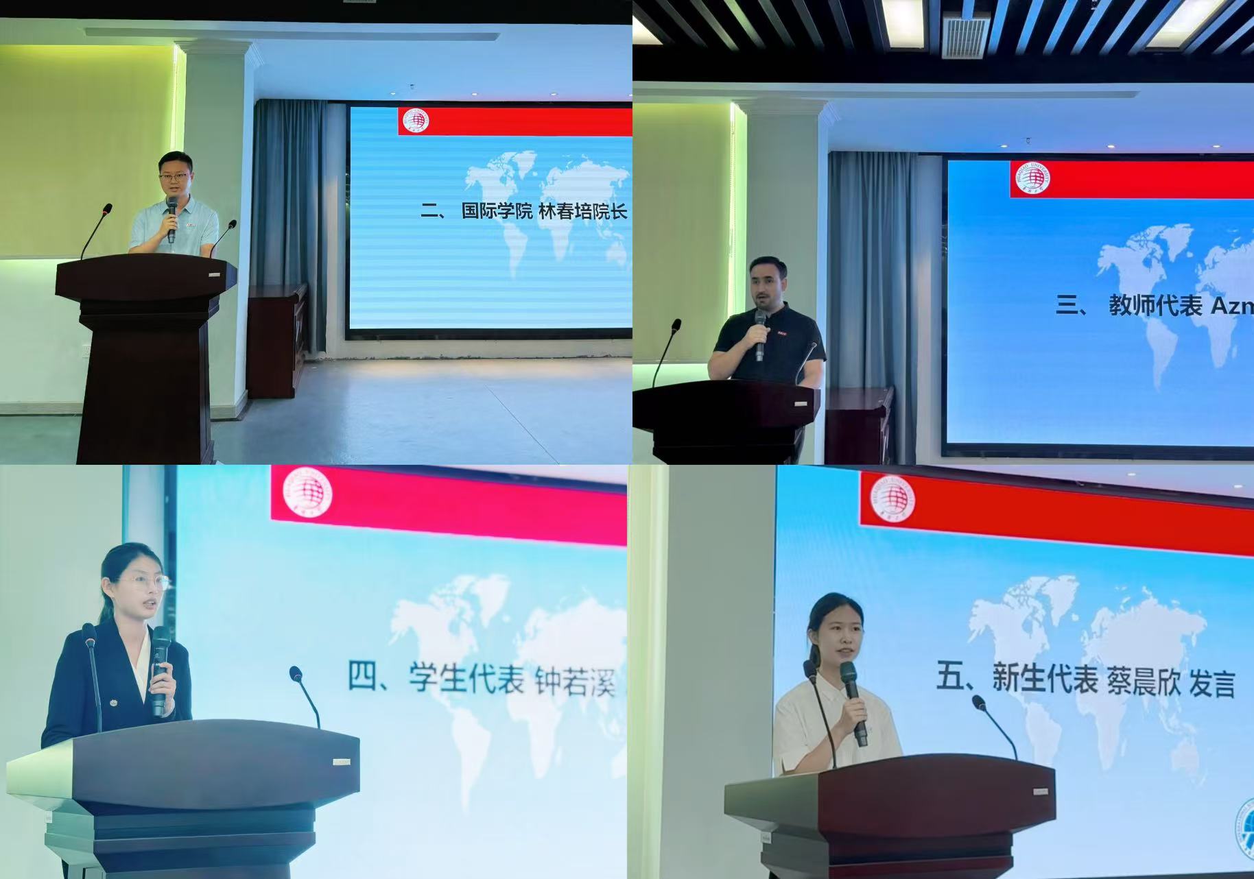3044永利集团院长林春培为新生讲授开学思政第一课。他寄语新生在大学要勇于探索尝试,学会自我管理,点亮属于自己那盏灯;要以开放心态融入3044永利集团的学习环境,明确学业方向、深耕专业领域,学会用专业知识区解决问题,最终成长为兼具国际视野与扎实学识的优秀人才。学院外籍教师代表AZMAT,说学校是汇聚多样性、创新与共同价值观的平台,呼吁学生积极融入大学生活、善用学校资源以拓宽视野、培养全球思维,未来为中国发展贡献力量。