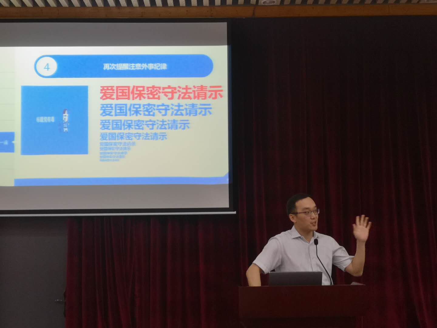 国际交流合作处、保卫处分别就安全、保密、守法、请示四大要点进行宣讲,着重强调了要遵守外事纪律、随时保持联系、坚持国家安全观和增强防范意识。教务处、研究生院也分别就本科生、研究生的学分学籍问题做了讲解。