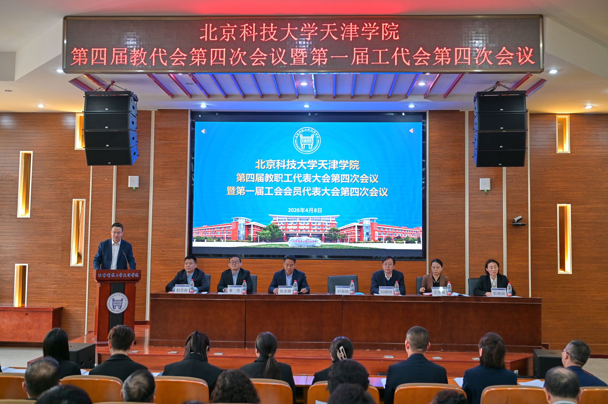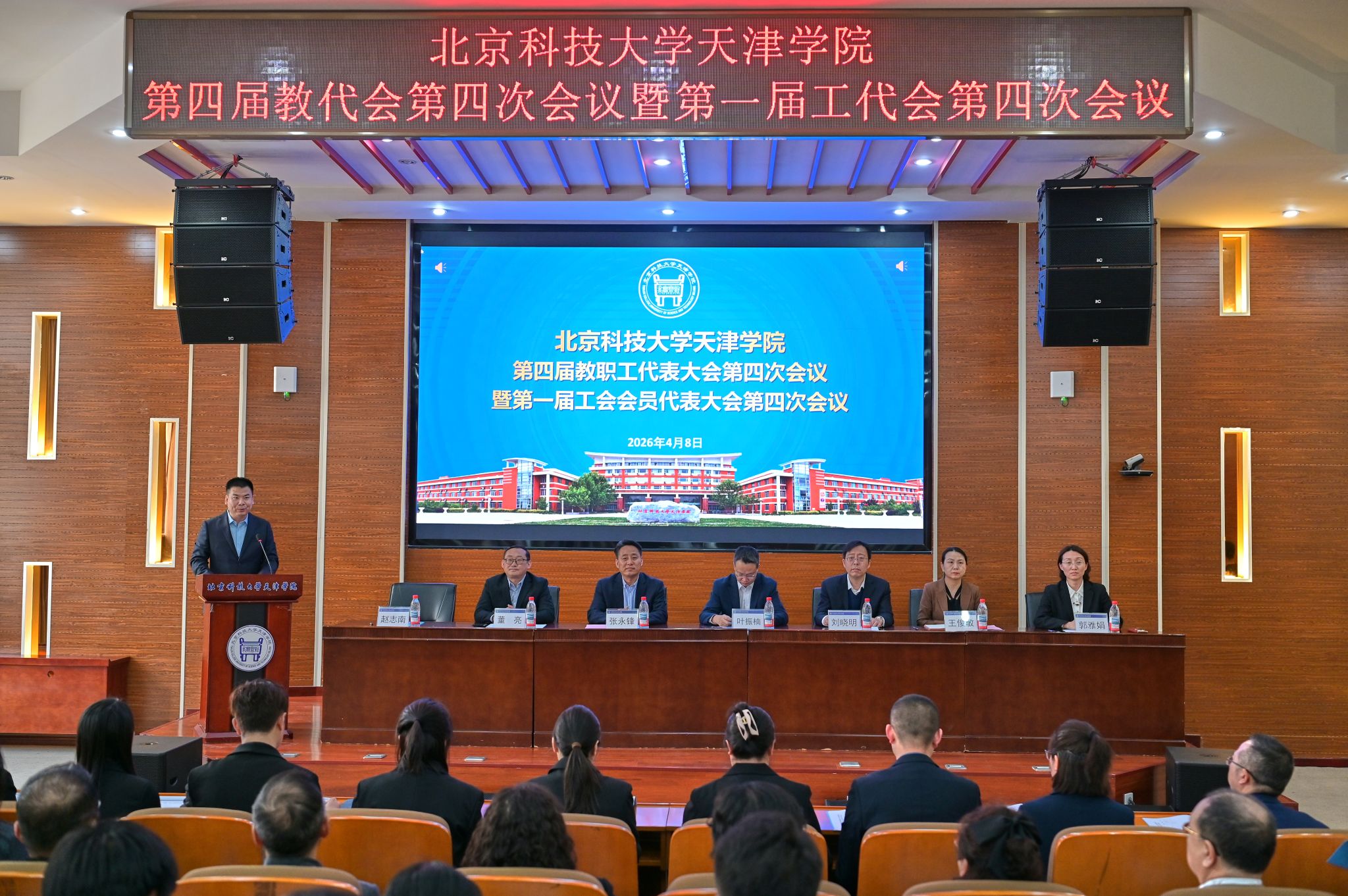4月8日下午,学院第四届教职工代表大会第四次会议暨第一届工会会员代表大会第四次会议在理工馆学术报告厅召开。学院党委书记叶振楠及学院全体领导班子出席,教代会、工代会代表参加了本次会议。会议由党委副书记赵志南主持。