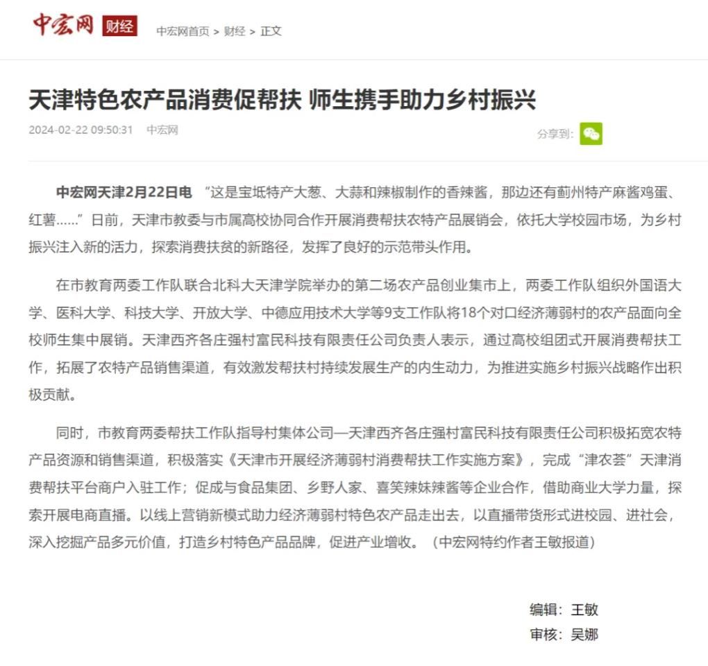 日前,我院乡村振兴创业集市活动受到中宏网关注报道。中宏网是由国家发展和改革委员会主管的中央新闻网站,专注经济领域观察报道,是了解中国经济的国家经济视窗。