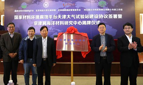 人民网天津11月29日电 近日,国家材料环境腐蚀平台天津大气试验站建设协议签署暨京津冀海洋材料研究中心揭牌仪式在北京科技大学天津学院举行。中国工程院院士、中国科学院海洋研究所研究员、国家海洋腐蚀防护工程技术研究中心主任侯保荣,北京科技大学副校长何民庆,京津新城管委会党工委书记周振亮,京津新城建设管理委员会主任纪永红等嘉宾出席。