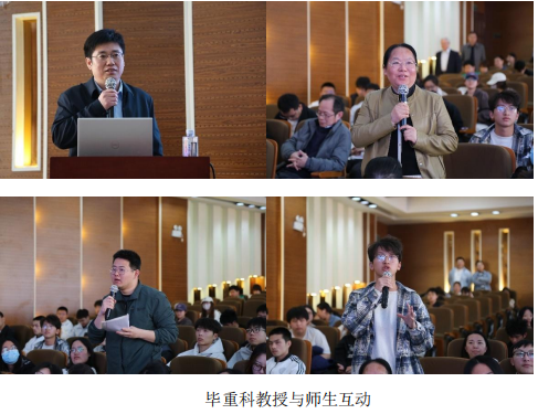 讲座现场气氛热烈,师生积极互动,针对学生提出地面对日新月异的人工智能技术,作为本科阶段人工智能专业的学生,在校期间应当怎样做才能增强自己未来的就业竞争力及等问题,毕重科教授做了耐心解答和深度解析,思维碰撞火花不断。