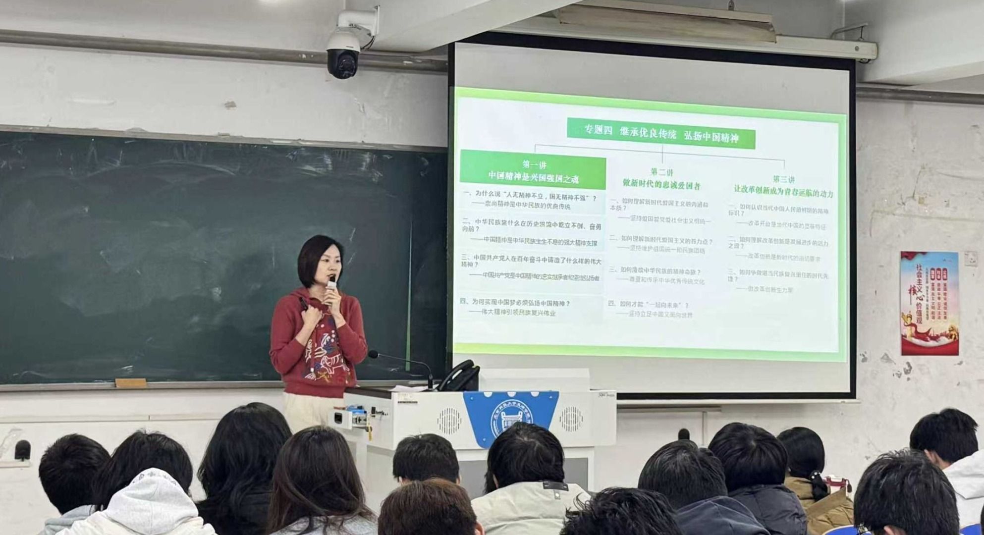 陈霞老师围绕教材第三章第一节“中国精神是兴国强国之魂”展开教学,涵盖历史底蕴、内涵成因、继承弘扬与时代价值四大模块。课程以“共同力量之源是什么”为切入点,引导学生情感共鸣,通过历史纵深与对比讨论阐释精神本质及其重要性。陈霞老师以“大历史观”贯穿理论阐释,多维破解教学重难点:从地理环境、传统文化、民族实践三方面解析“四个伟大精神”的成因;借助抗美援朝战争、《觉醒年代》影视片段、中外抗疫及山火应对等案例,系统呈现中国精神的独特内涵与有机联系,强化“中国共产党是中国精神传承者”的认知;并通过抗战精神与抗疫精神、航天成就与民生改善等现实对照,阐明中国精神在凝聚力量、推动创新、支撑中国式现代化中的核心作用。课堂问题链教学与小组实践,有效推动学生将精神认同内化于心、外化于行,成为坚定志气、骨气、底气的实践指南。