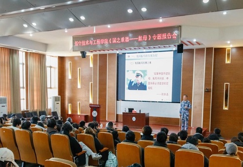 随后,张传勇教授以《国之重器——航母》为题,从“我国为什么发展航母、航母发展的艰难历程、某型舰概况及其军事应用”三个方面,运用大量珍贵影像、翔实数据和生动案例,系统回顾了我国航母事业从零起步到走向深蓝的壮阔征程。当讲到老一辈军工人“干惊天动地事,做隐姓埋名人”的奉献故事时,现场掌声雷动。
