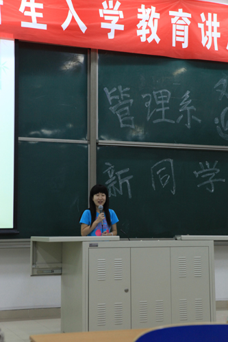 金秋九月,收获时节,为帮助10级新同学更快的转变好角色,适应大学的学习、生活节奏,管理系结合自身专业特点,于9月16日晚在理工图书馆210教室召开了10级新生入学教育讲座。管理系主任梁桂川、党总支副书记张琦以及管理系全体教师和辅导员出席了本次讲座。