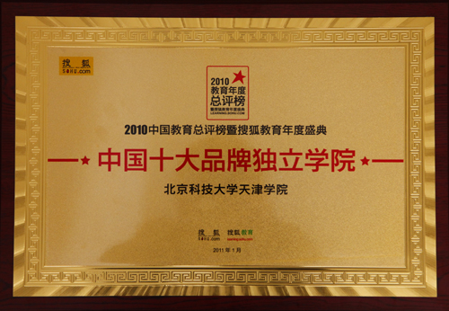 中国教育年度总评榜暨搜狐教育年度盛典已经举办了五届,参与人数超过2700万人。今年该活动以“致青年”为主题,广邀教育界的领军人物,教育机构代表以及国人“致青年”,为年轻一代的教育问题建言献策,以此促进全社会对青年教育问题的关注,携手推动中国教育的发展;本次活动在众多网民、学子、教育界专家人士和全国主流权威媒体的积极参与下,领跑中国教育的优秀机构和个人在此次评选中得以脱颖而出。我院荣获“致青年 TO YOUTH”2010教育年度总评榜暨搜狐教育年度盛典“中国十大品牌独立学院”。