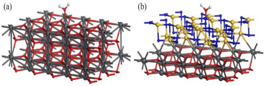 Figure 3 Water adsorption energy model (a)PbO2 (b) Si3N4-PbO2
