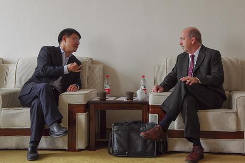 王院长代表北京科技大学天津学院对美国阿尔玛文理学院副校长艾伦·加特林表示热烈欢迎,介绍了学院的基本情况、国际交流及学科专业建设等情况。艾伦·加特林校长对我院取得的成绩给予了高度赞赏,同时也介绍了美国阿尔玛文理学院的基本情况、人才培养目标及与中国大学的交流合作情况。双方表达了今后在学生深造、教师互访、学术交流等方面进行合作的愿望。
