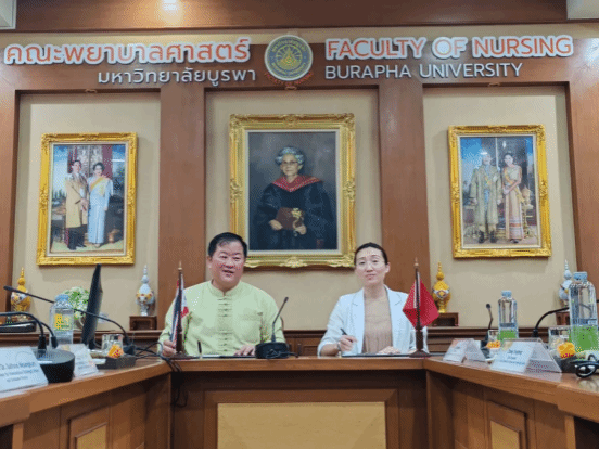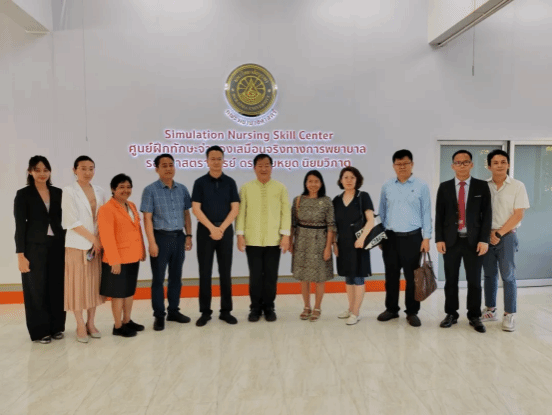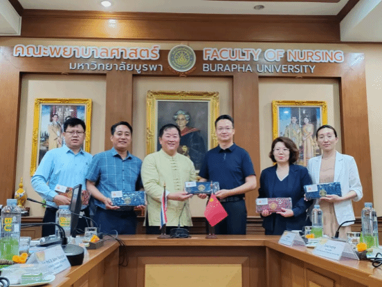 29日下午,叶振楠书记一行前往泰国东方大学进行访问,考察了东方大学学生教室、宿舍、护理专业实验室建设等情况。两校就护理学专业硕士合作项目进行了详细的探讨交流,双方一致认为,在后续合作中,将瞄准各校优势学科和团队,进一步探索合作模式、拓宽合作渠道,共同推动中泰高校间优势学科的交流和发展。洽谈会上,党委副书记郭雅娟代表我院与泰国东方大学签署合作协议。
