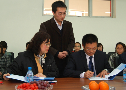 最后,王宾容教授代表我院经济系与长江证券李红涛总经理在实习基地协议书上签字。按照协议有关内容,双方会尽快完成实习基地的挂牌仪式。长江证券也将根据我院学生需求,定期安排行业资深人士来我院为学生开展专业讲座。协议的签定,也为经济系与长江证券在学生专业实习、青年教师实践等方面工作的开展奠定了基础。