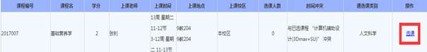 4.根据学生自己的情况,选择相关课程,点击“选课”