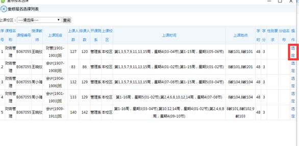 3. 根据系统提示选择需要重修的课程点击“报名”