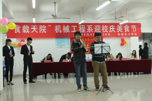 为迎接学院十周年校庆,丰富校园文化,11月23日下午2:30,由机械系分团委举办的“食载天院”机械系迎校庆美食节在风味食堂二层成功举行。本次活动旨在通过美食制作品尝等活动,为我院学生提供一个展示平台,丰富学生课余生活。机械系分团委书记吴思,外语系分团委吕世娥老师,管理系14级辅导员赵怡老师及各参赛队伍参加了此次活动。