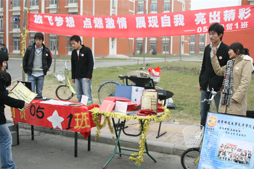 为了宣传先进、学习先进,增进各班级之间的相互交流,促进校风学风建设,11月22日中午,2006—2007学年度优秀班集体形象展示活动在学院学生活动区隆重举行。17个团结奋进的班级在这个黄叶铺地的季节清点收获,以个性的展示和饱满的热情诠释着青春与活力。