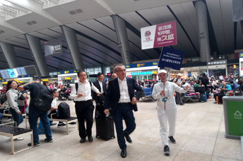 我院志愿者的工作岗位主要位于北京南站迎送组,在北京南站的各个进出口,都能找到他们的身影。主要负责迎接嘉宾并将其送到指定的区域。每天的工作时间长达15小时,人均每天服务7、8个小时,截止到19号下午五点,共计服务来自美国、英国、澳大利亚、迪拜、比利时等约六十支参会代表团。