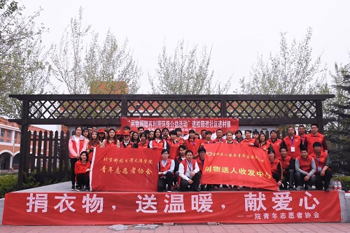 2017年4月11日至13日,北京科技大学天津学院青年志愿者协会与宝坻区“一家亲”志愿服务社联合开展了为期三天以“衣加衣,我们一直在行动”为主题的旧衣捐赠再利用环保公益活动。本次活动共募集爱心物资120余袋,包括羽绒服、毛衣、绒衣、外套等衣物共计7500余件,并将全部捐赠给承德市平泉县山区的贫困家庭。