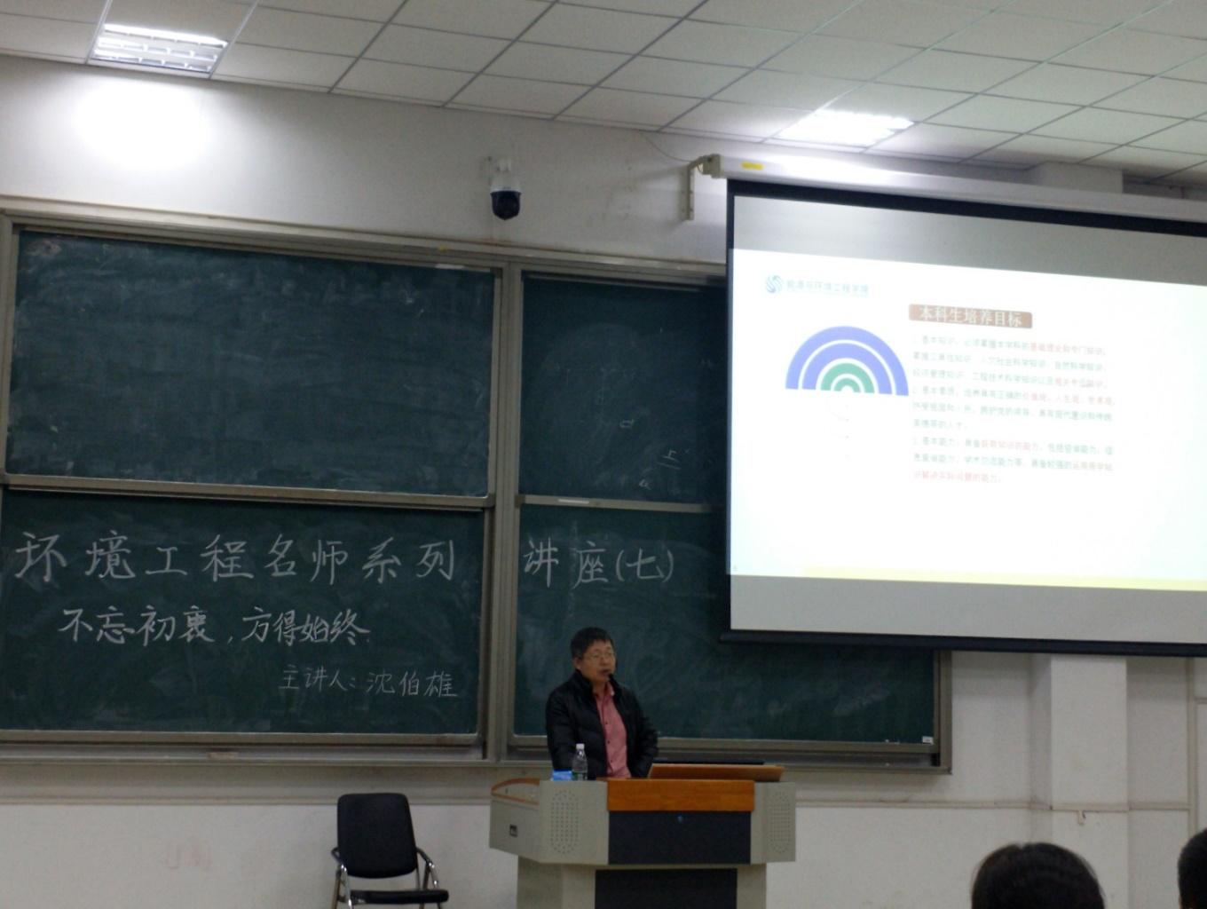 通过沈院长的演讲,使学生们重温了申报高考志愿时立志环保事业的情怀,明确了未来职业规划的方向,激发了学生们的考研热情,使学生们从小在心里种下的那颗“可以飞翔”的种子跃跃欲试,有了未来可以走得更远,飞得更高的期盼。