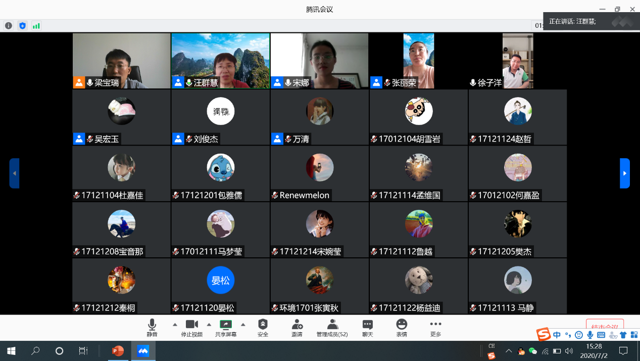 7月2日城建学院环境工程系在线举行了疫期教学总结会,同时给返校的17级学生进行了暑期学习任务的动员。会上,梁宝瑞老师对疫期教学情况及暑期实习实践的重要性进行了说明,宋娜老师对暑期学生们的毕设工作进行了详细安排,最后由环境工程系主任汪群慧教授进行了总结发言。