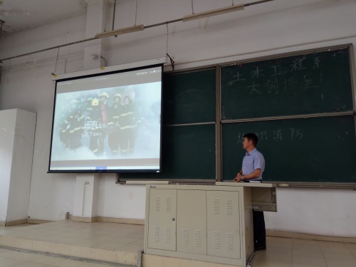 6月13日,土木工程系特邀中国法学会会员,公安部消防局特邀培训讲师,具有27年消防工作经验的天津市宝坻区公安消防支队长尤胜战来我院在8教108开展“建筑消防及设备”专题大创讲座。