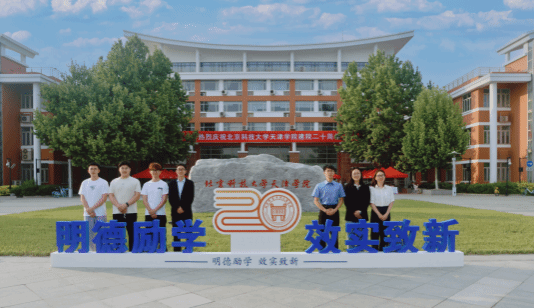 “津毓廿华”设计以“海河育才·廿载芳华”为核心理念,融合天津文脉与北京科技大学天津学院建校20周年校庆精神,通过色彩交响、文化转译与形态隐喻,将地域基因转化为教育叙事,使“育才之舟”成为承载时空记忆、传续文化薪火的美学载体,诠释我校廿载育人的精神丰碑。