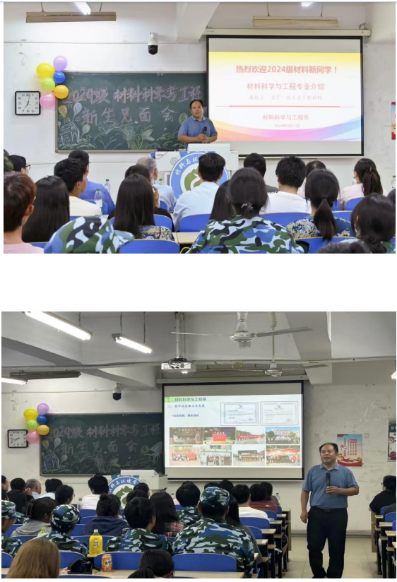 首先,王洪涛老师为大家带来了精彩且深入的专业内容介绍。从材料的前沿研究到广阔的应用前景,从专业的课程设置到未来的职业发展方向,让大家对材料科学与工程这个专业有了更为清晰和全面的认识。同时,他鼓励2024级同学们在接下来的大学生活中,勤于学习,勇于探索,积极参与各项学术活动、社会实践,拓宽视野,提升自我。