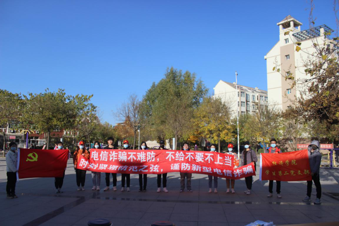近年来,网络诈骗犯罪、电信诈骗犯罪发案率不断上升,已成为影响群众财产安全的重要因素。为了进一步提升我院师生党员与广大群众的防电信诈骗意识,加大防范宣传力度,使群众财产安全不受到侵害。11月1日,经济学院学生第二党支部,经济学院分团委、学生会在周良街道水苑社区联合开展防范新型电信网络诈骗宣传活动。
