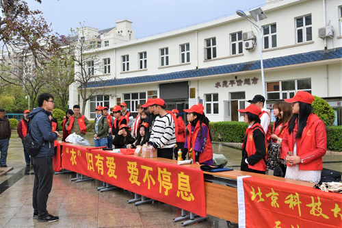 心系群众,为人民服务!4月20日至21日,由经济学院学生第二党支部主办,经济学院学生第一党支部、宝坻“一家亲”青年志愿服务社、周良街道办事处水苑社区居民委员会、学院青年志愿者协会协办的“‘衣’旧有爱,爱不停息”衣物回收再利用公益活动在周良水苑社区居委会前广场开展。