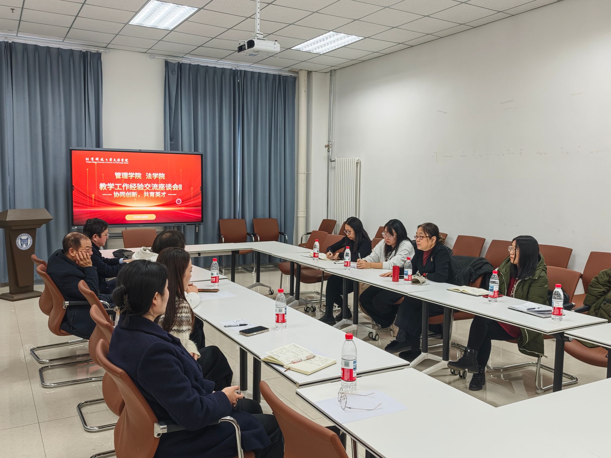 在此背景下,为促进教学经验互鉴,优化实习实践教学体系,全面提升人才培养质量,管理学院与法学院于2025年12月9日联合举办“协同创新,共育英才”教学经验交流座谈会。法学院院长朱京安老师、常务副院长邢晓晖老师,管理学院常务副院长王宾容老师出席会议,法学院知识产权教研室主任杨馨淼老师、实践教学指导中心主任刘国平老师、教师代表王一然老师,管理学院会计学教研室主任任洁老师、财务管理教研室主任张小云老师、审计与税收教研室主任李双双老师、实践教学指导中心主任邵帅老师共同参会,围绕教学改革与实习实践工作深入交流经验,共探育才提质路径。