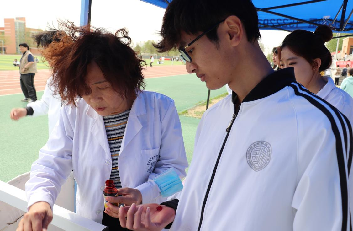 4月19日,师生代表们在学院西操场开展志愿服务活动。在校运会比赛的各个阶段,康复治疗系的师生志愿者们都积极的为参赛者进行拉伸指导和肌肉放松,确保每位运动员都能在安全和舒适的环境中恢复体力。康复治疗系的师生们不仅提供了专业的拉伸服务,还借此机会向学院师生普及健康运动和科学恢复的重要性。他们通过现场演示和讲解,让更多人了解正确的拉伸方法和运动后的恢复技巧,从而提高师生的健康意识和生活质量。他们的专业知识和热情服务得到了师生们的一致好评。