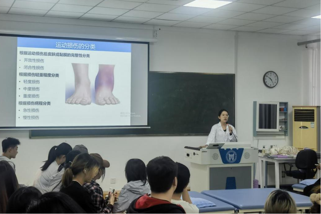 4月16日,大健康学院康复治疗系《运动疗法技术学》主讲教师张怡晖为康复22级全体学生开展理论教学和实操演练,通过有计划、有组织的运动损伤(赛前热身、赛后拉伸)相关的理论教学和实操演练,为助力校运会和学生今后工作奠定良好的理论和实践基础。实操演练结束后并对所有学生进行肌肉牵伸技术考核,择优选择11名同学代表康复治疗系开展校运会志愿服务实践活动。