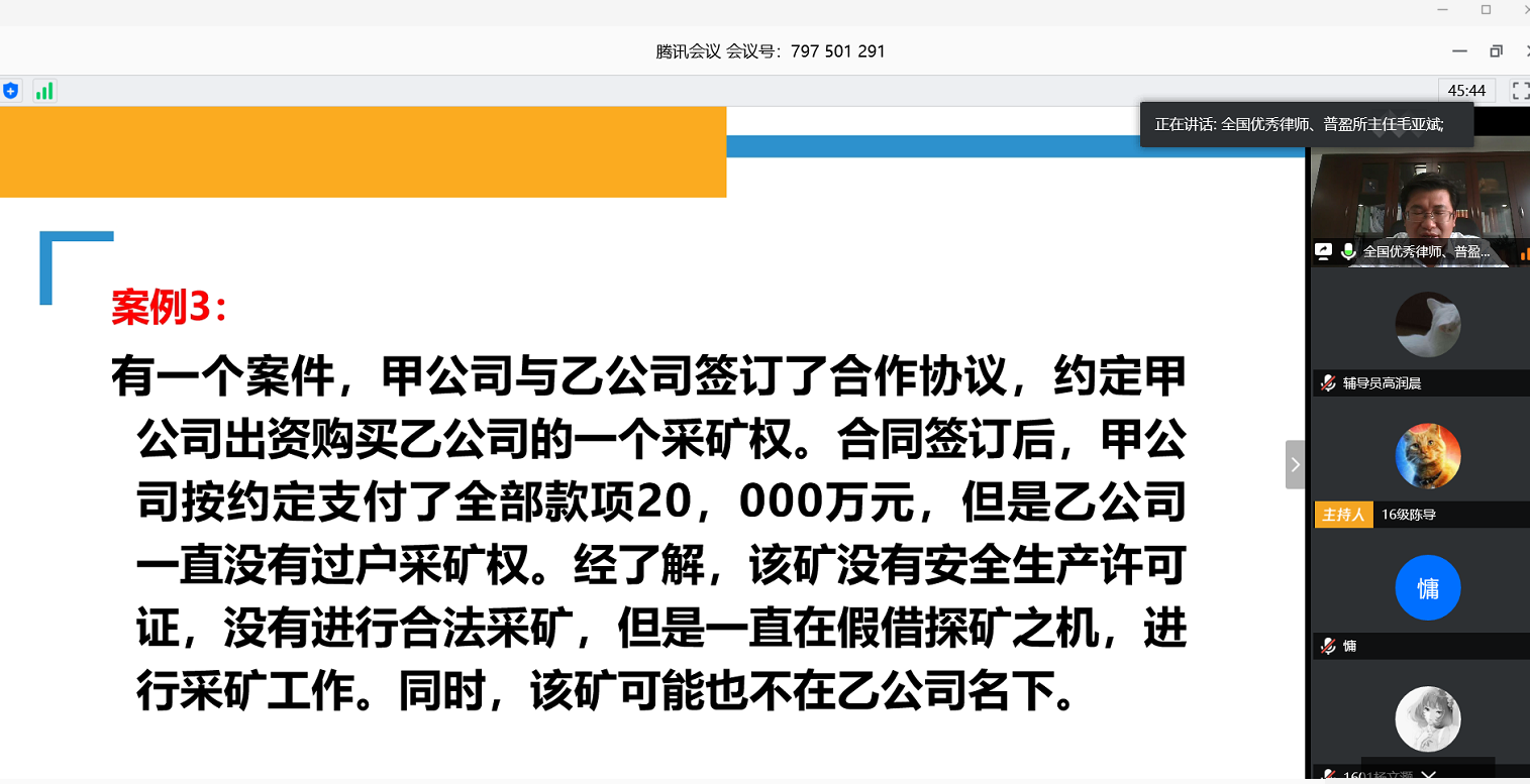 疫情防控期间,法律系应用网络资源,积极拓展教学平台,不断推进和落实项目教学化和教学项目化。通过此次讲座,不仅拓宽学生视野,增长学生见识,还为同学们的日后学习指明了方向,为法学学子今后的法律学习与工作奠定了坚实基础。